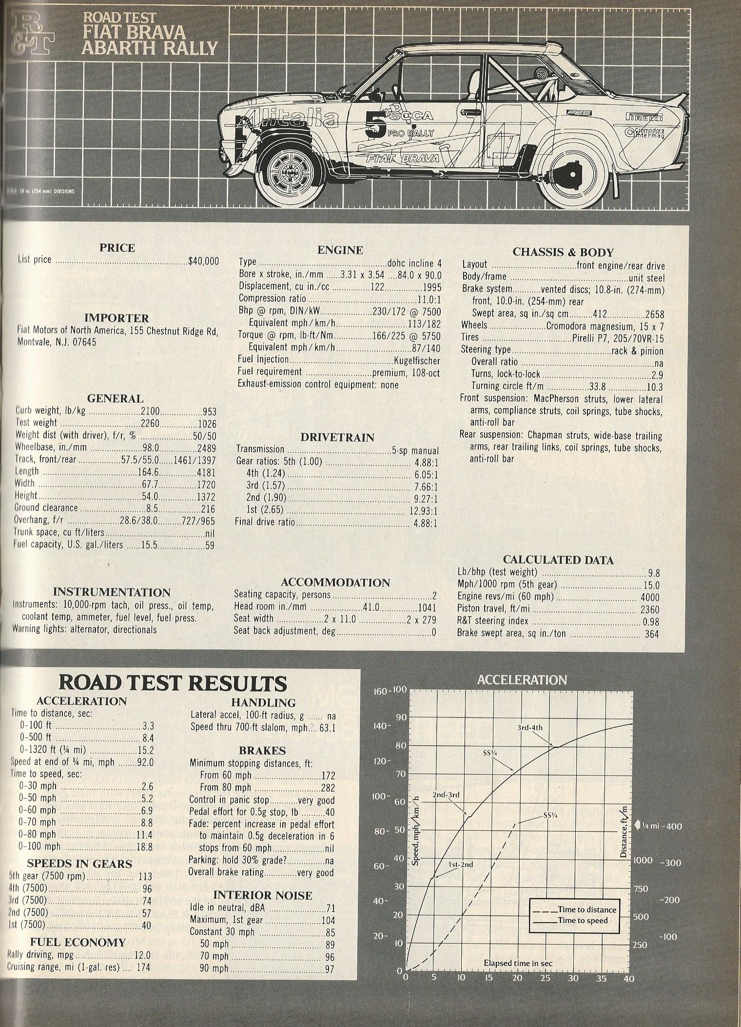 The engine revved crisply from 4000 to 7500 rpm, the exhaust snarled and the close-ratio gears whined gloriously. As reported in the Brava Alitalia’s Road Test in R&T, May 1980, the combination was not so much loud as frantic.