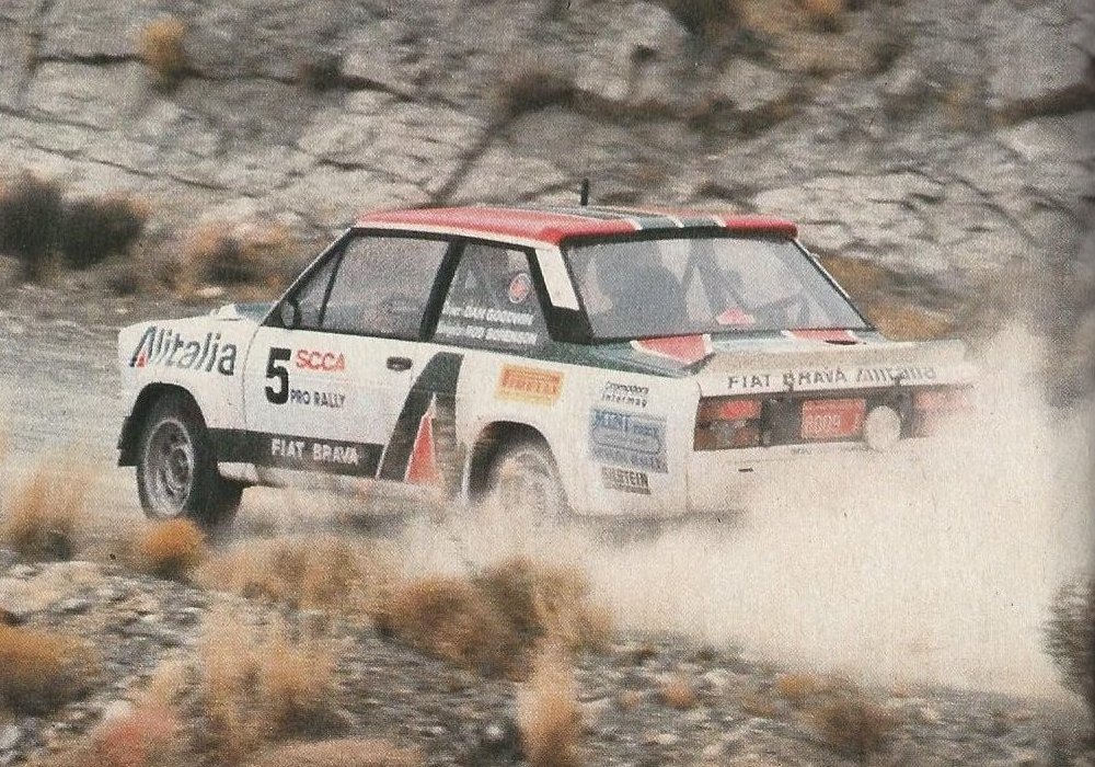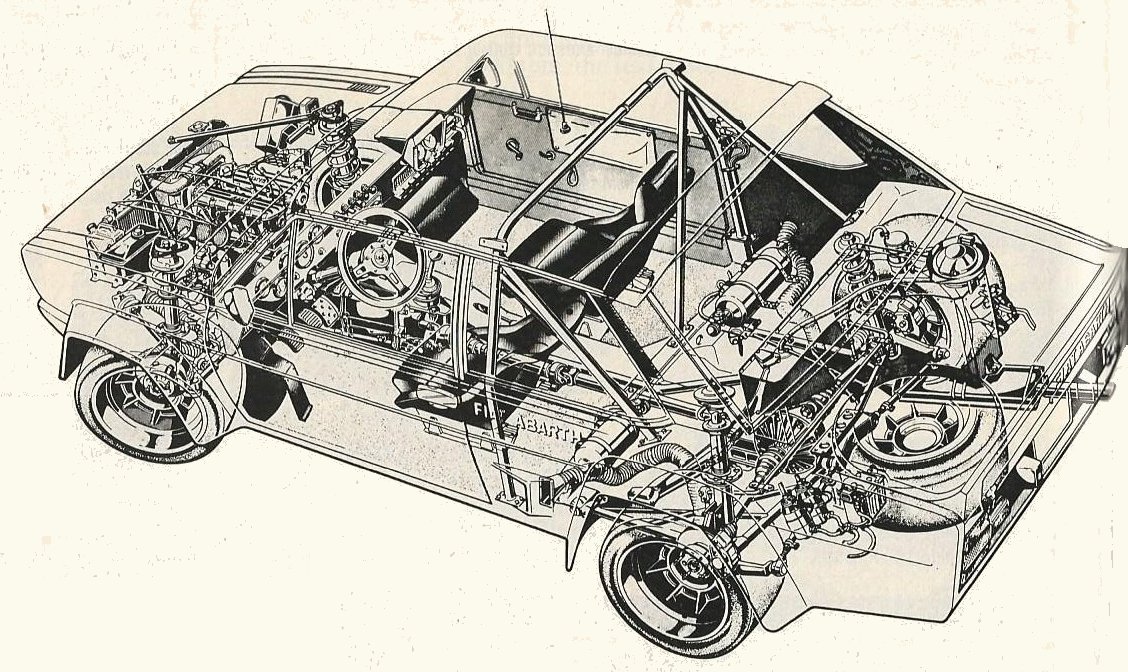 Fiat Abarth Brava Alitalia Group 4 rally car. This and other images by John Lamm from R&T, May 1980.