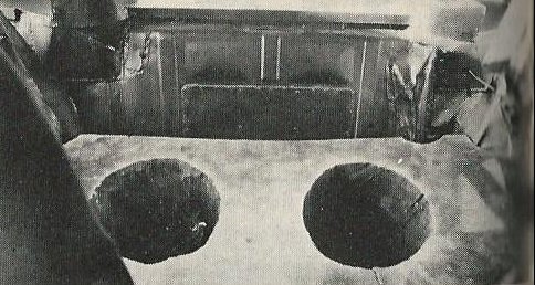 The back seat was replaced by a thick piece of foam rubber with two deep recesses. It may have looked like a twin-occupancy outhouse, but in actuality was for storing driver and navigator helmets on transit stages.
