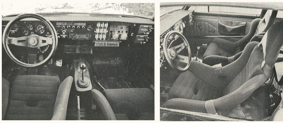 Its front seats were custom form-fit for driver and navigator with full five-point harnesses. The navigator had dual Halda Tripmasters, two built-in Heuer analog stopwatches, a bank of 12 Bosch relays with 16 fuses safeguarding one or another electrical subsystem and a Lucas flex-neck trouble lamp. The driver had less to fool with, but no less to do.