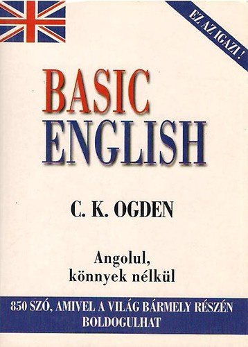 Basic English, by C.K. Ogden, Hungarian edition. Its banner says “This is for real!” The band at the bottom reads, “850 words that thrive in any part of the world.” Image from moly.hu.
