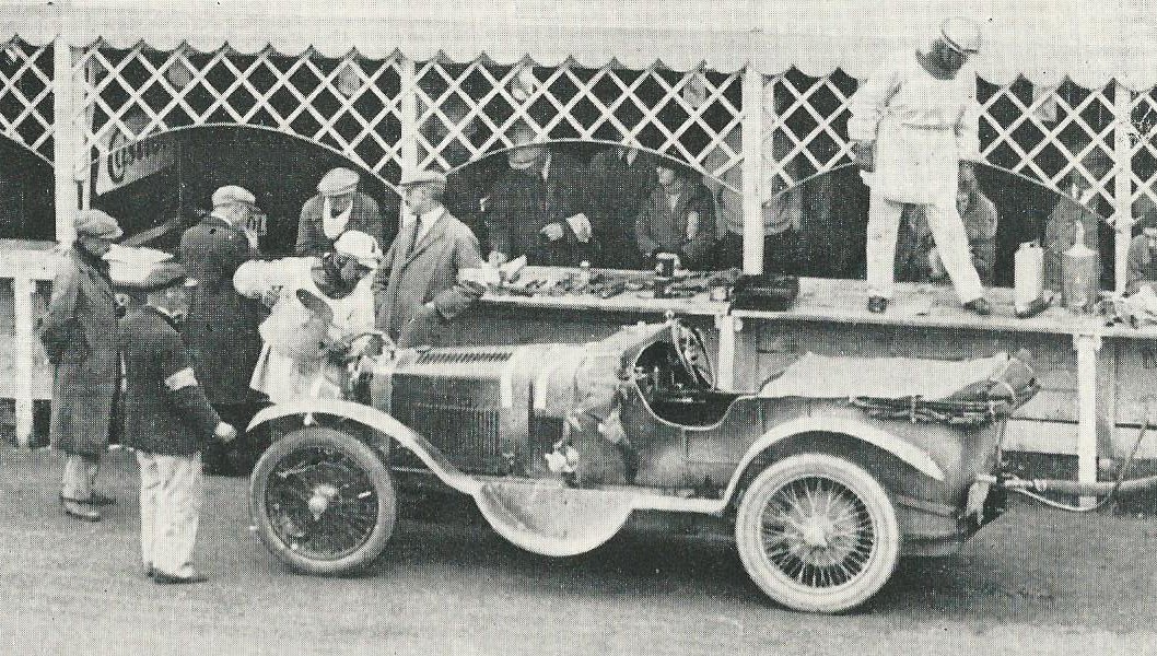An O.M. Tipo 665 S in the pits at the 1926 Le Mans race, where the marque finished 4th and 5th overall.