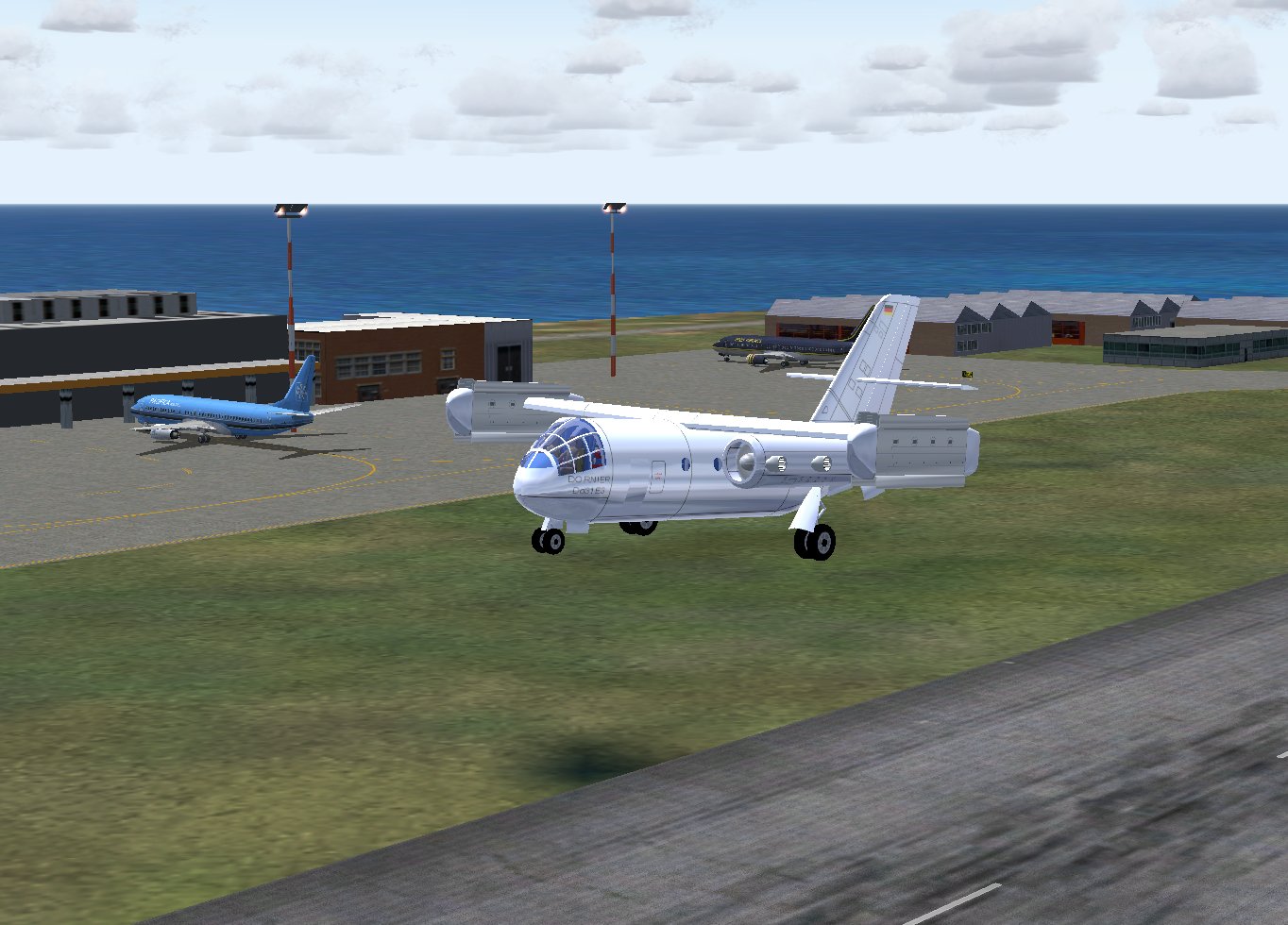 Readers of this website might remember seeing it in “Some VTOL Aircraft.” It’s a Dornier Do 31, which also provided a fine subject for my flight sim modeling, even to its amazing real-life behavior in sim takeoff and landing.