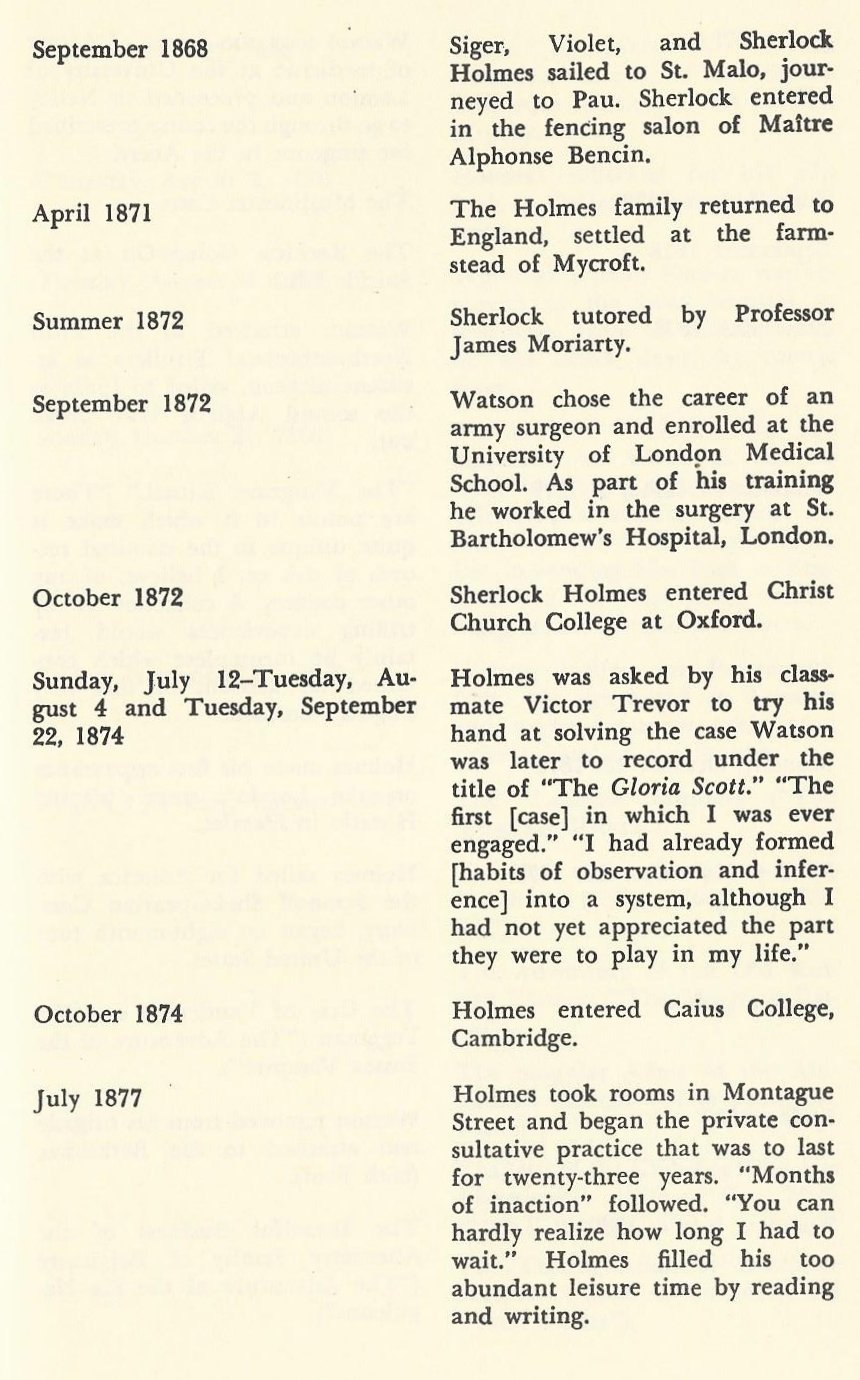 Two books in my Sherlockiana pile are definitive about this. William S. Baring-Gould, editor of The Annotated Sherlock Holmes: The Four Novels and the Fifty-Six Short Stories Complete (2 Volume Set), also wrote Sherlock Holmes of Baker Street: A Life of The World’s First Consulting Detective, which contains a detailed Holmes timeline. By contrast, Nicholas Utechin’s Sherlock Holmes at Oxford gives it away in the title; not that he and Baring-Gould agree, mind.