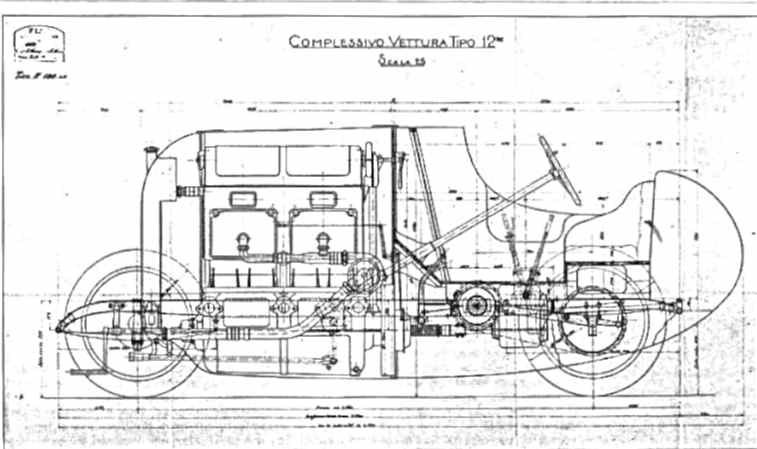 1910 Tipo S76 Beast of Turin, illustrated by Dr. Ing. Fabio Rapi. Images from “Automobili Italiane Ediozine Pininfarina,” Ediozine Pininfarina, Automobile Quarterly, Volume III, Number 3, Automobile Quarterly, 1964.