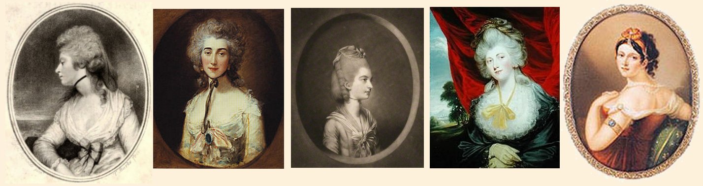 From left to right, Mary Robinson, Grace Dalrymple Elliot, Frances Villiers the Countess of Jersey, the Marchioness of Hertford and the Marchioness of Conyngham.