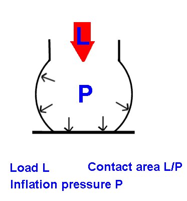 Given a load L and inflation pressure P, a tire’s contact area is very close to L/P. Akin to an uninflated balloon, a flat tire’s sidewalls support only negligible weight. Note, it doesn’t take much load to flatten an uninflated tire.