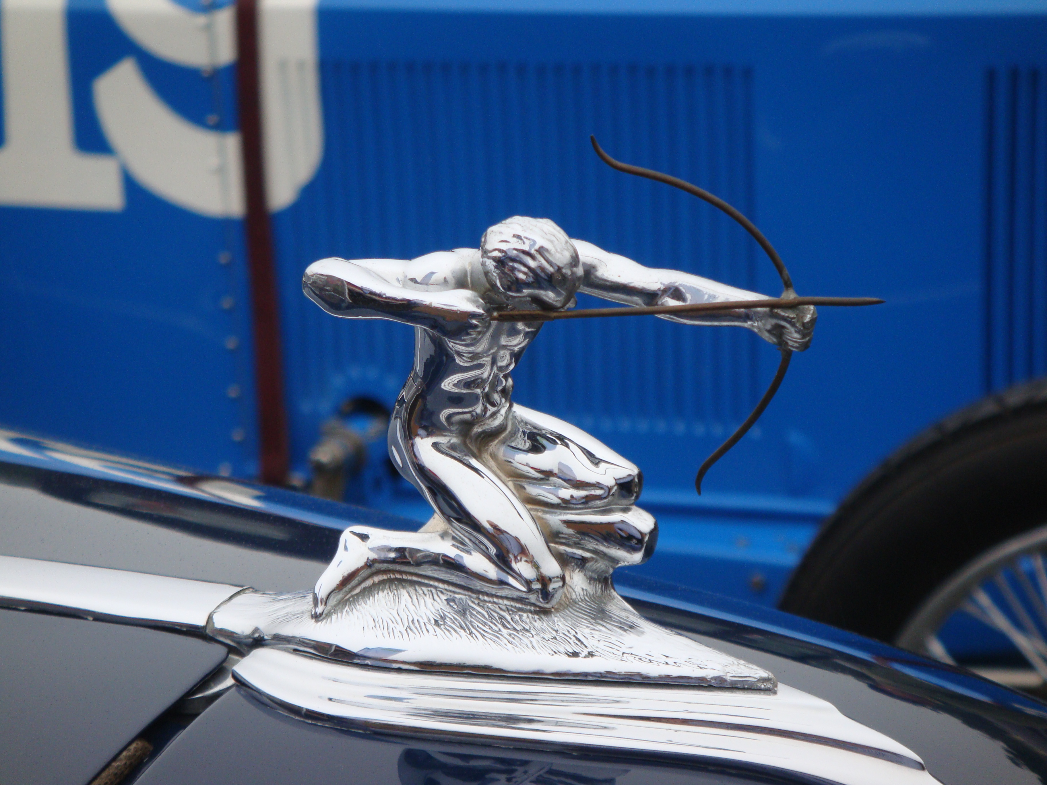 The archer theme made sense for this marque. In fact, a Pierce Arrow badge had its Pierce pierced by an arrow. One can imagine the safety implications of the archer’s armed weapon as bonnet bling.
