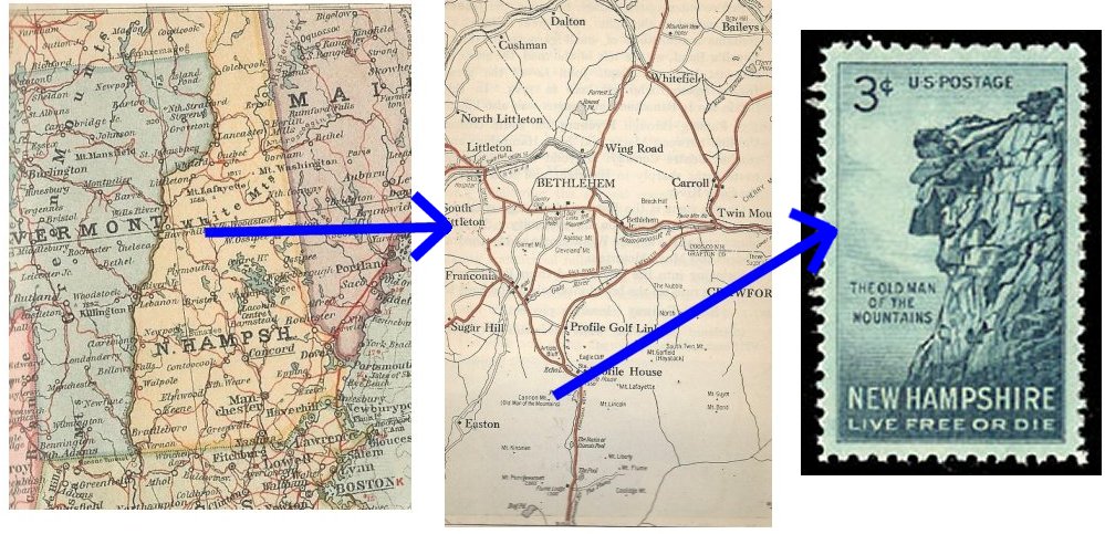 In addition to being the 61st episode of Breaking Bad, the “Granite State” is a familiar nickname for New Hampshire, and for good reason. Prominent among local granite was the Old Man of the Mountain, aka the Great Stone Face or the Profile. This touristic attraction was located in the White Mountains, near Franconia, New Hampshire.