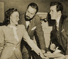 Howard Duff, at right, was Sam Spade. Lurene Tuttle portrayed his ever-loyal office gal Effie Perrine. William Spier, center, produced and directed the series.
