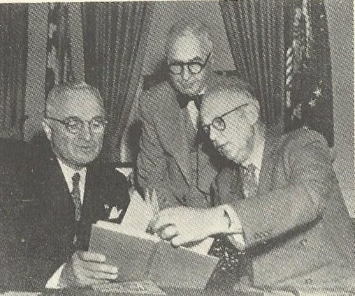 The Adventure of the Blue Carbuncle, first publication of The Baker Street Irregulars, Inc., gets a page-by-page inspection by President Truman, aided and abetted by Elmer Davis and Edgar W. Smith, fellow Sherlockians. Image from Sherlock Holmes by Gas-Lamp.