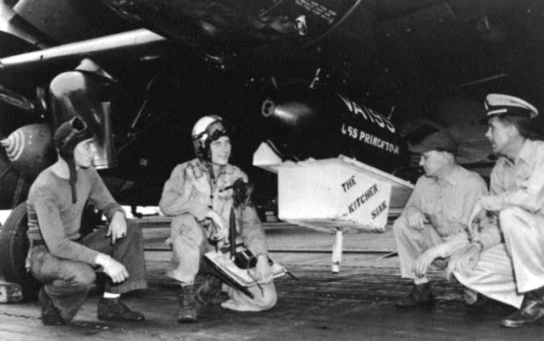 Aboard the U.S.S. Princeton, during the Korean War.