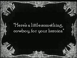 The Cowboy is wearing a bit too much mascara, but he’s still the strong, silent type (helpful in the flick, as it’s silent to begin with). He frowns and responds.