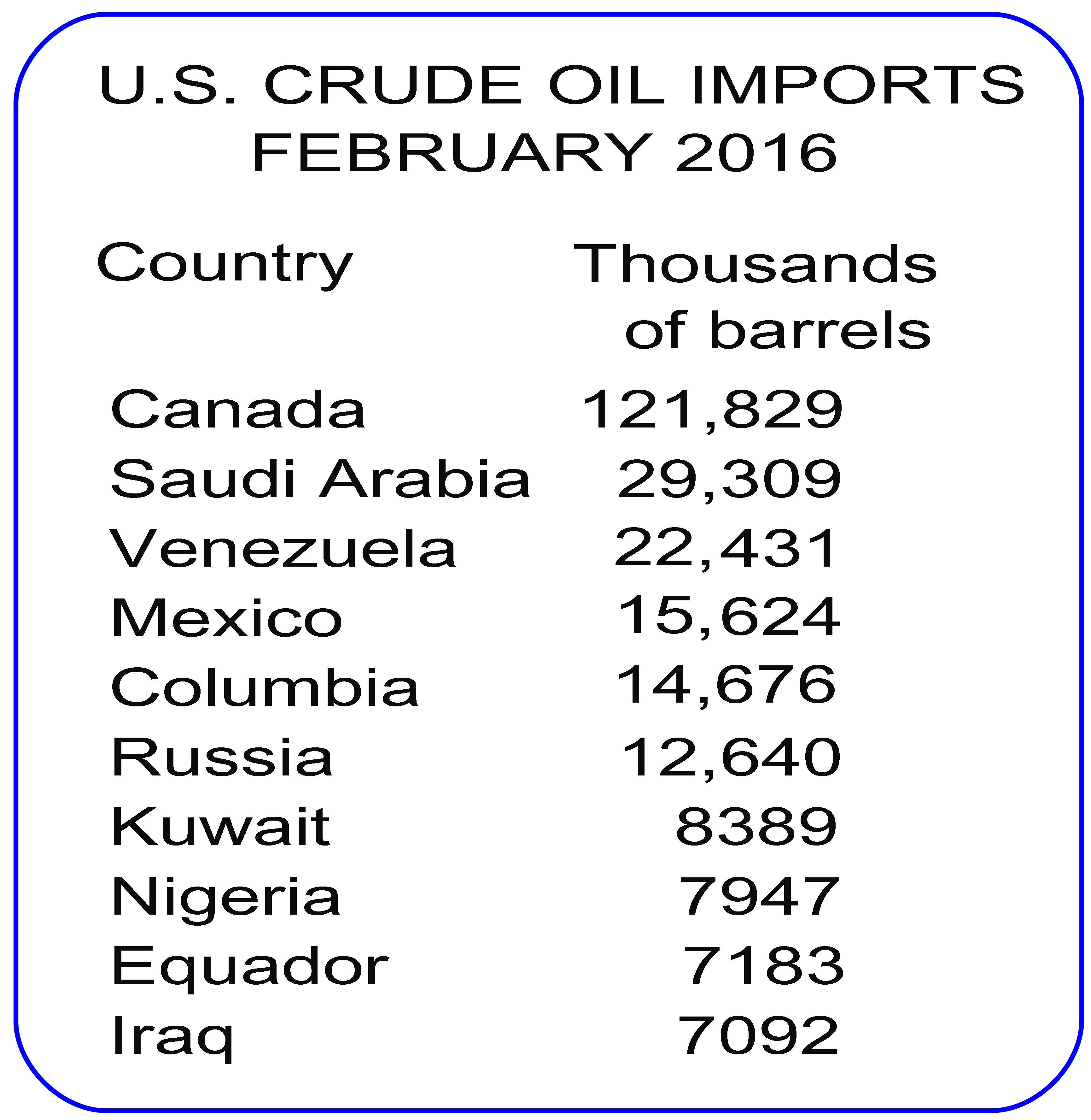 For year after year, the largest petroleum supplier to the U.S. has been its neighbor Canada. Its other neighbor, Mexico, is invariably in the top five. Data from February 2016 are typical: Canada accounted for 42 percent of U.S. crude imports; those from the Western Hemisphere totaled 63 percent of the total.