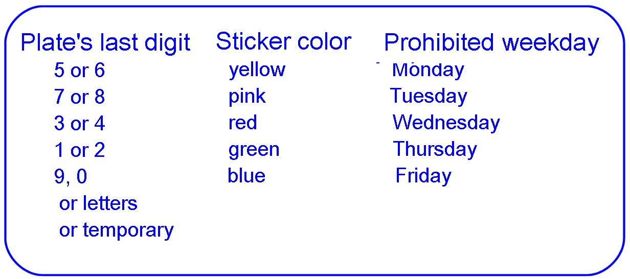 Mexico City. The Hoy no Circula (Spanish: Today [your car] does not circulate) plan has been in effect in Mexico City and its environs since 1989. Its complexities suggest a logician’s fine touch.