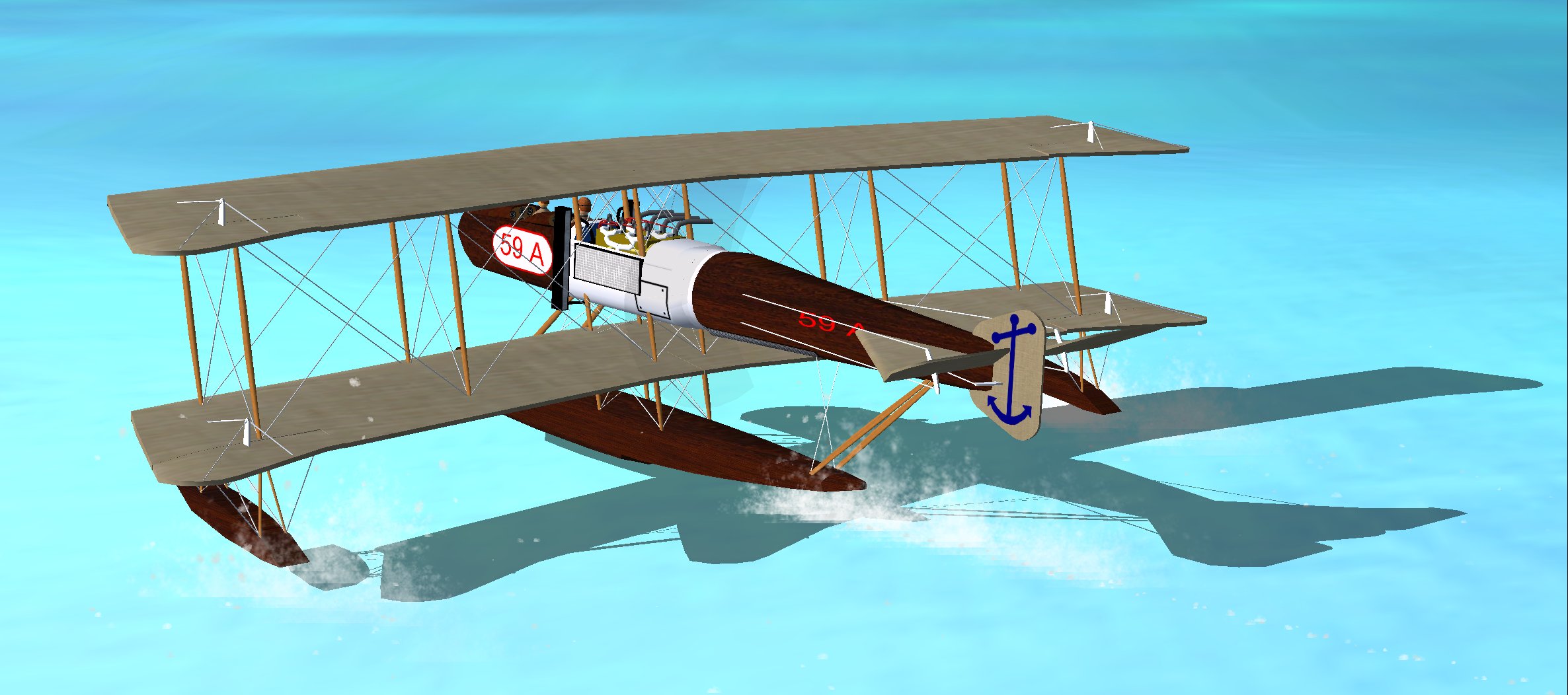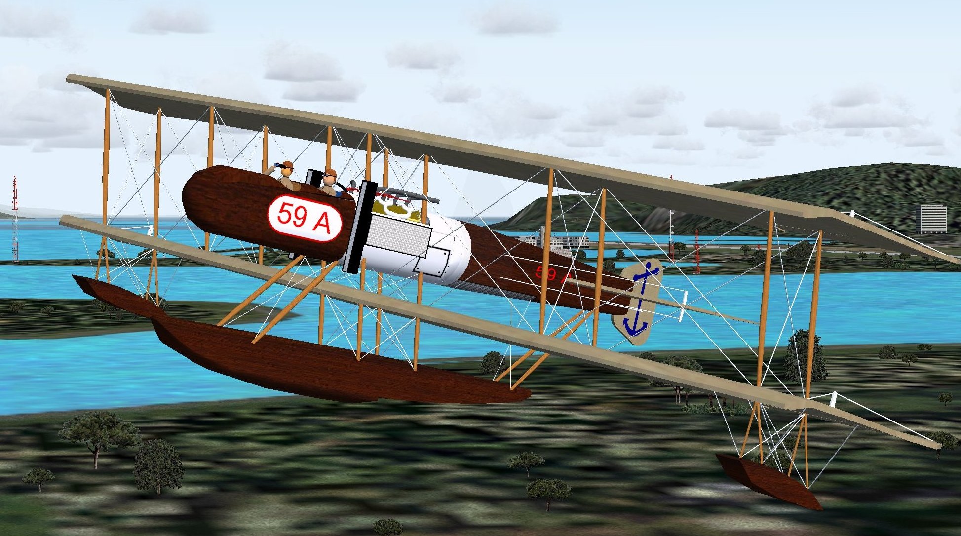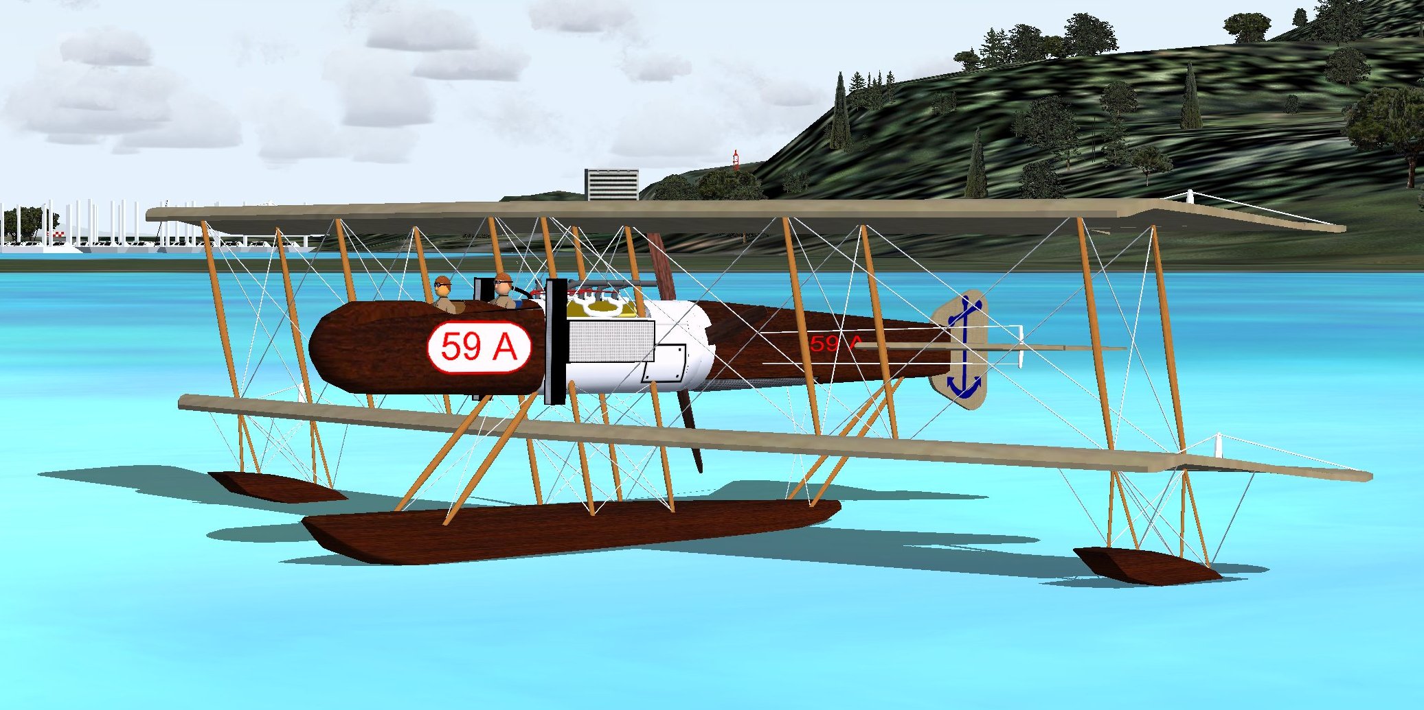 Gallaudet D-1, c. 1916. These and the following images are of my GMax model built for use in Microsoft Flight Simulator.