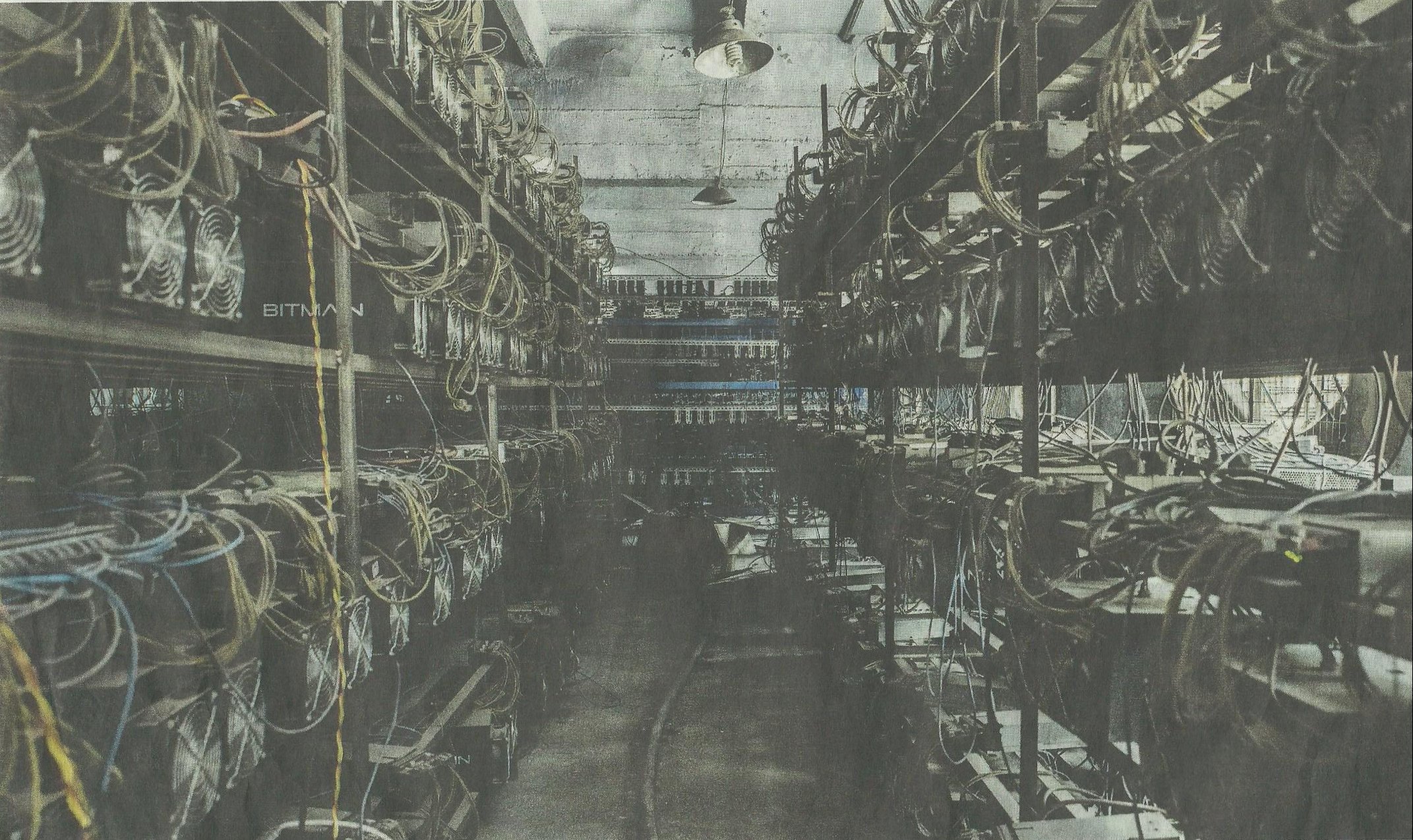 A Chinese server farm, an assemblage of computers dedicated to processing Bitcoin transactions. Image by Gilles Sabré/The New York Times, July 3, 2016.