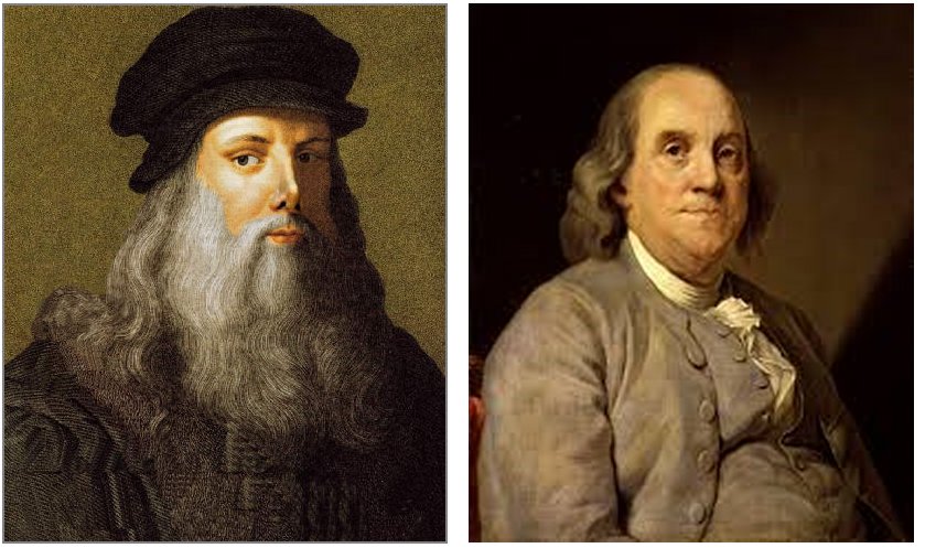 At left, Leonardo da Vinci, 1452 – 1510. At right, Benjamin Franklin, 1706 – 1790. Both were vegetarians at one time or another.