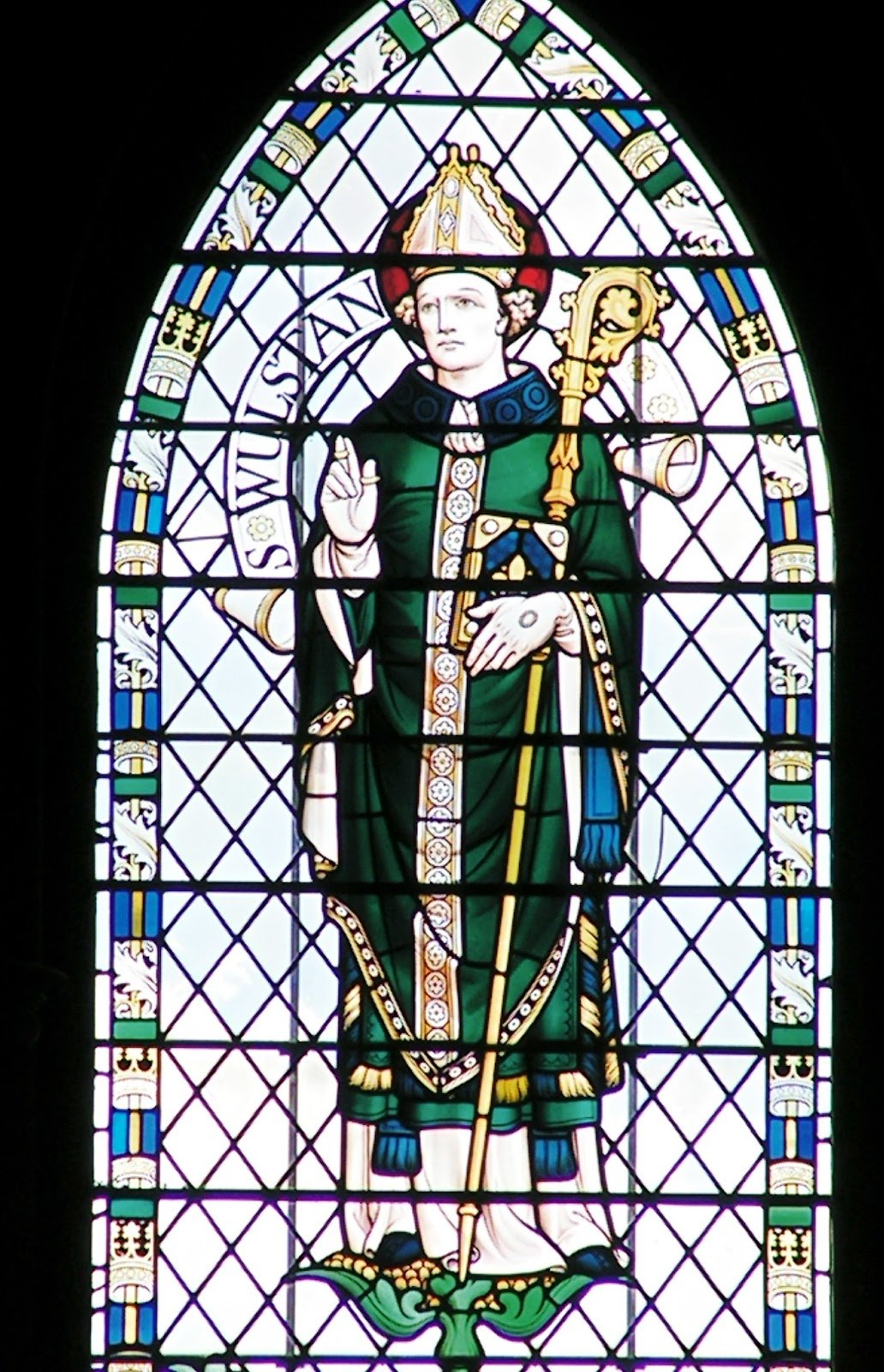 Saint Wulfstan in the Goodman window of England’s Worcester Cathedral. Image from worcestercathedral.blogspot.