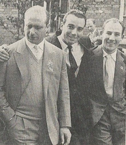 From left to right, Juan Manuel Fangio, Bernard Cahier and Stirling Moss. The magazine’s caption noted that, what with Mercedes-Benz’s hiatus from competition, the two drivers were temporarily “unemployed.”