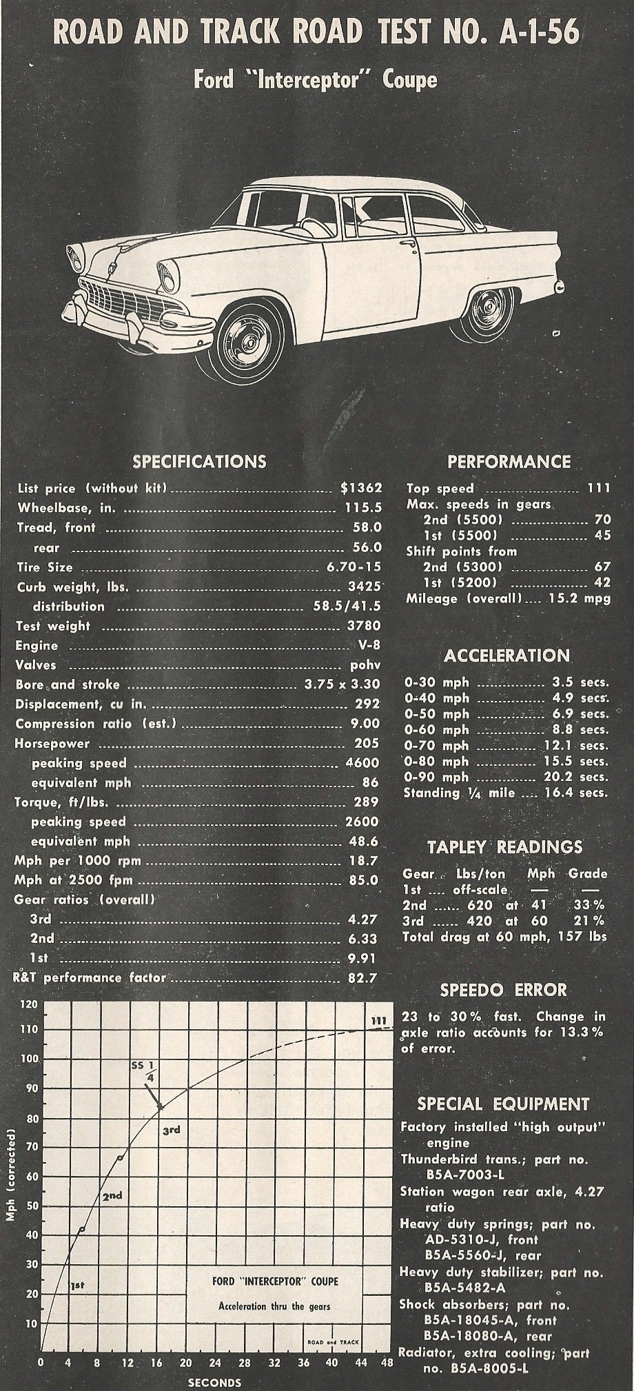 The subject of improving domestic car performance was a hot topic in R&T. One of the magazine’s two road tests in February 1956 addressed this with details of a Ford Interceptor Coupe.