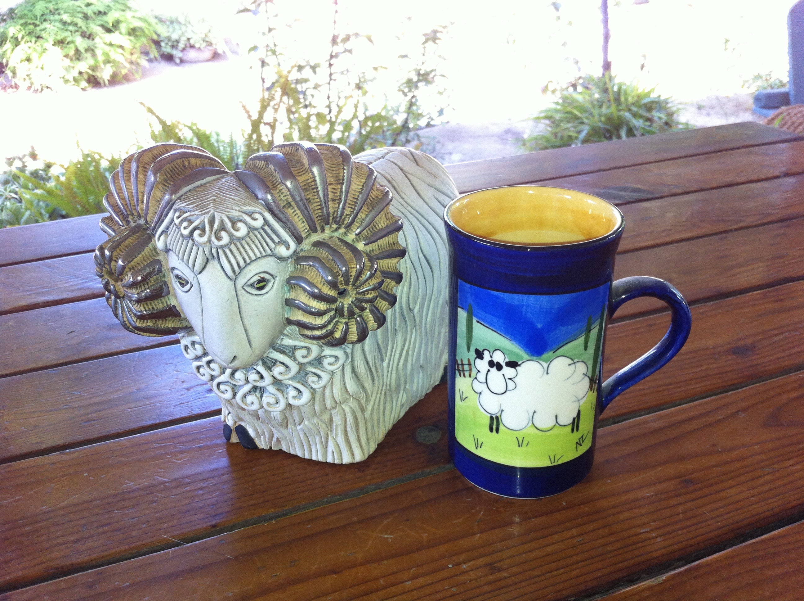 Neither Wife Dottie nor I have ever been to Uruguay, though she has a friend from there. The large ceramic ram with gold horns is identified as being hand-made in this South American country, number 791 of a flock of 2000.