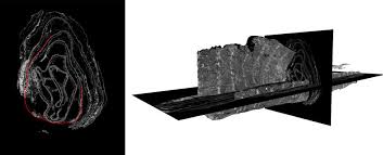Briefly, this virtual unwrapping involves an X-ray scan of the scroll using micro-computed tomography, a technique typically employed for fine-resolution analysis of biological tissue. The virtual unwrapping has three stages, segmentation, texturing and flattening.