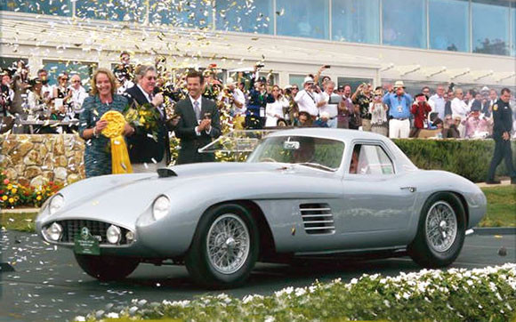 1954 Ferrari 375 MM Scaglietti Coupe, ex-Rossellini, celebrates its Best of Show at the 2014 Pebble Beach Concours d’Elegance. Image from auto.ferrari.com..