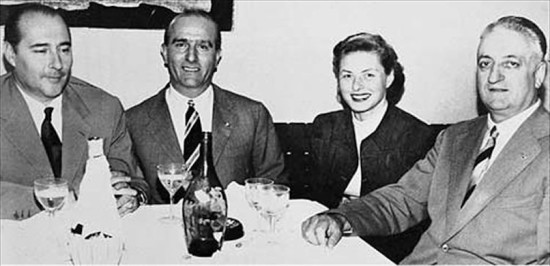 From left to right, Roberto Rossellini, Giuseppe “Nino” Farina, Ingrid Bergman and Enzo Ferrari. Image from mycarquest.com.