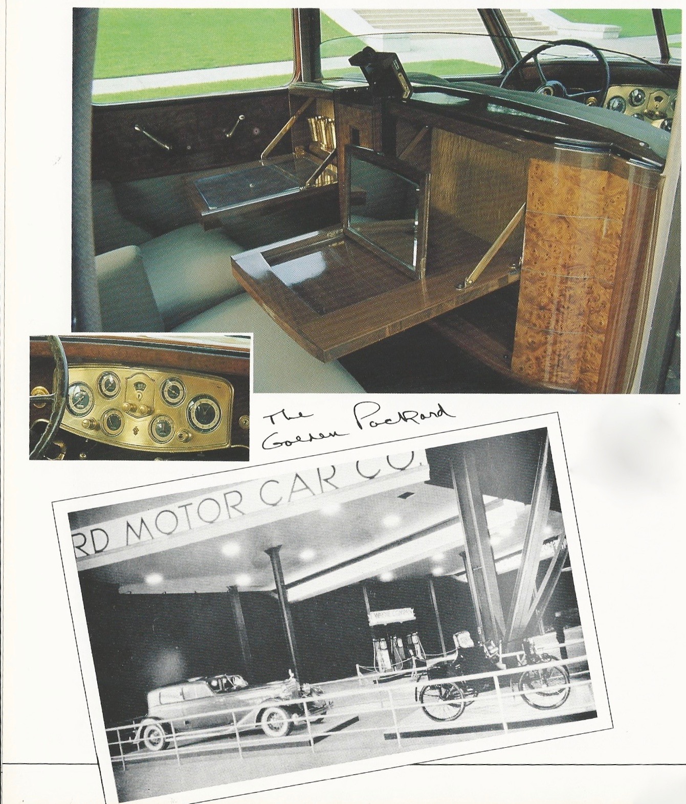 People waited in line for two hours to see the Golden Packard with coachwork by Dietrich, the most talked-about car of the fair. No doubt its gold-plated interior fittings helped, together with its opulent burled Carpathian elm, English broadcloth and beaver rug.
