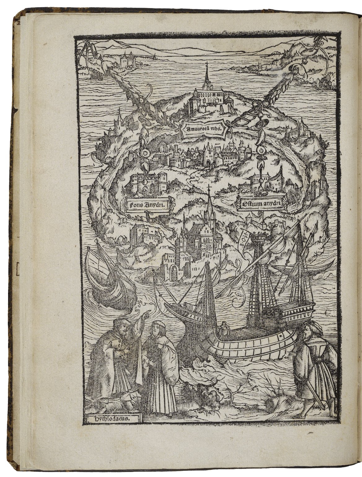Utopia, as envisioned by Ambrosius Holbein illustrating the 1518 edition published in Basel, Switzerland. An English edition appeared in 1551.