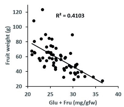 The researchers also identified a negative correlation between fruit size and sugar content. That is, tomatoes bred for size had less sugar content, to the detriment of their perceived taste.