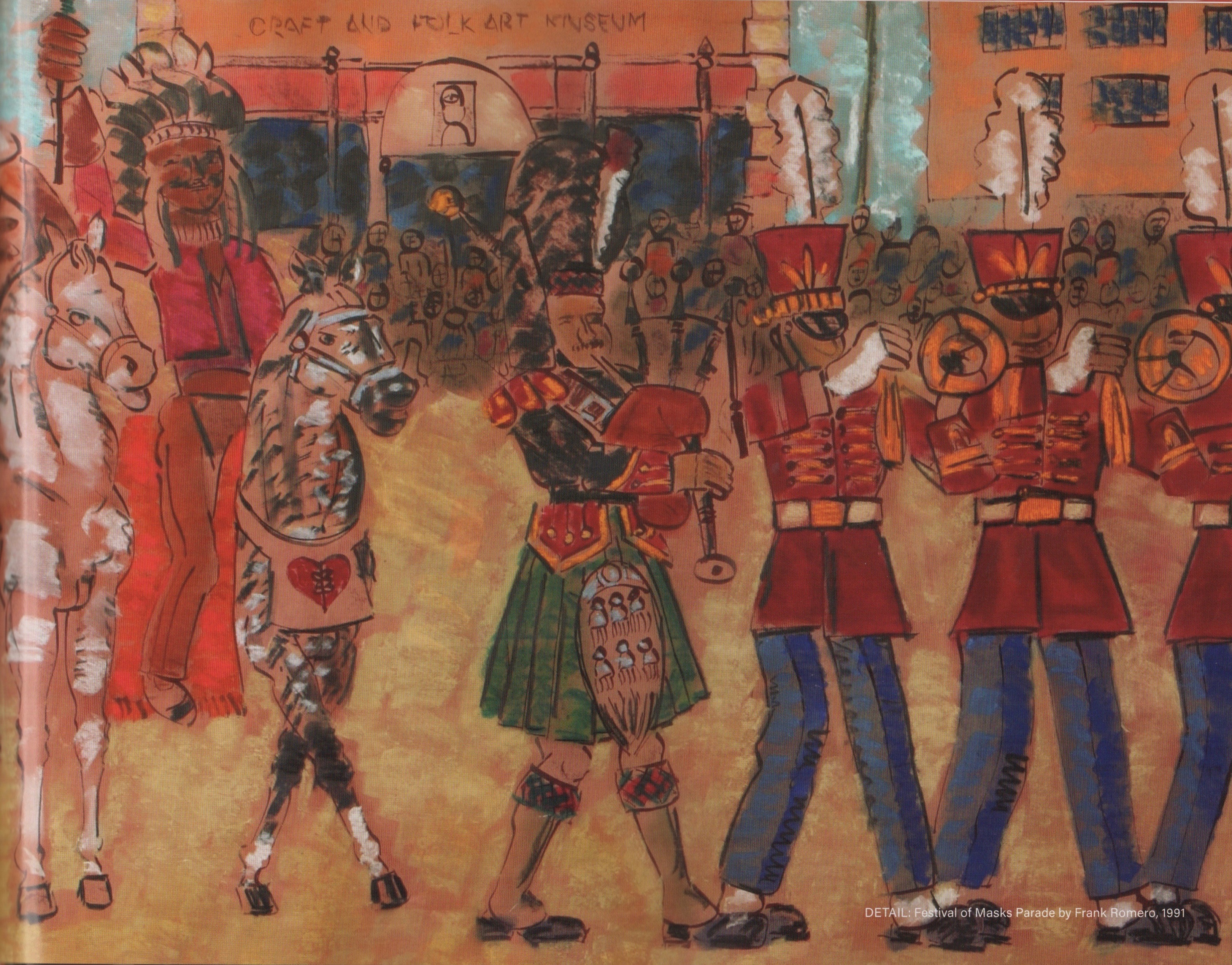 Sonia Romero, born in Los Angeles 1980, is the daughter of artists Frank and Alice Romero. She’s the granddaughter of Frank and Edith Wyle, founders of the Craft & Folk Art Museum in Los Angeles. Indeed, art is very much a family affair: The Craft & Folk Art Museum can be seen in the background of her father’s Festival of Masks Parade shown above.