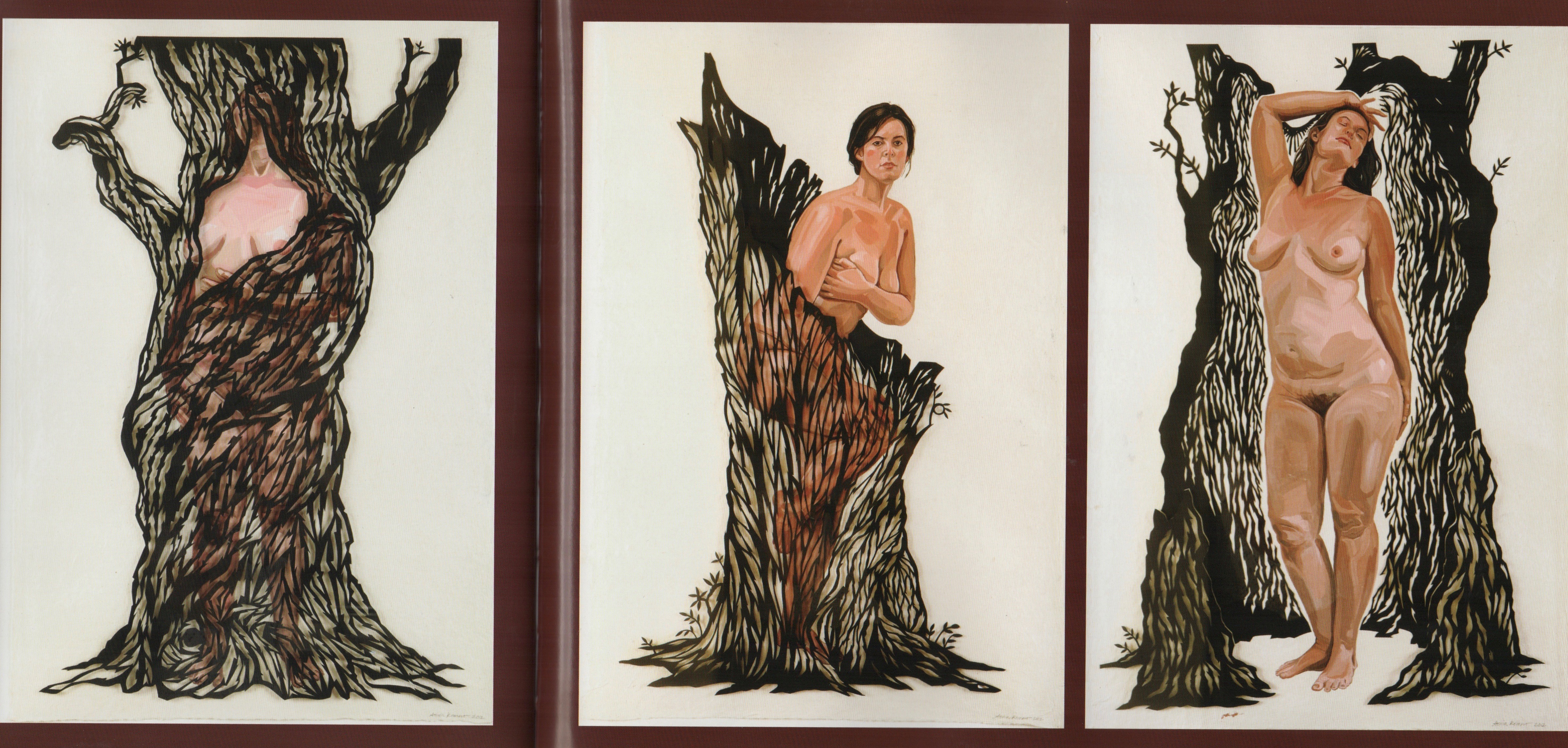 Sonia received her formal training at the Rhode Island School of Design, with an emphasis in printmaking. I love the way her young woman emerges from the papercut tree.