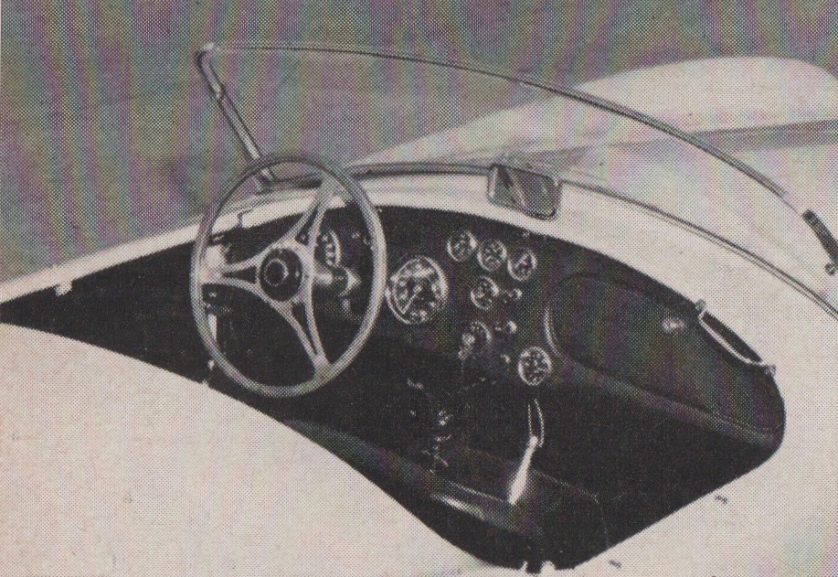 Bodywork was essentially Ace, except for flared fenders to accommodate the Cobra’s wider rubber, 6.50-15s front, 6.70-15s rear, versus the Ace’s 5.50/16s all around.