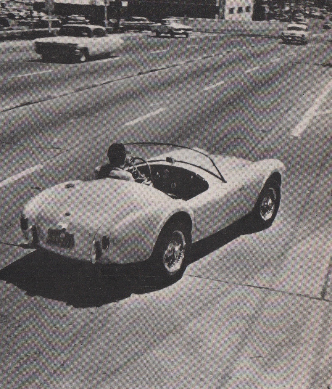 “In a demonstration at Riverside Raceway, Carroll Shelby shows photographer Bill Motta 6000 in 4th gear.” This computes out to 131 mph.
