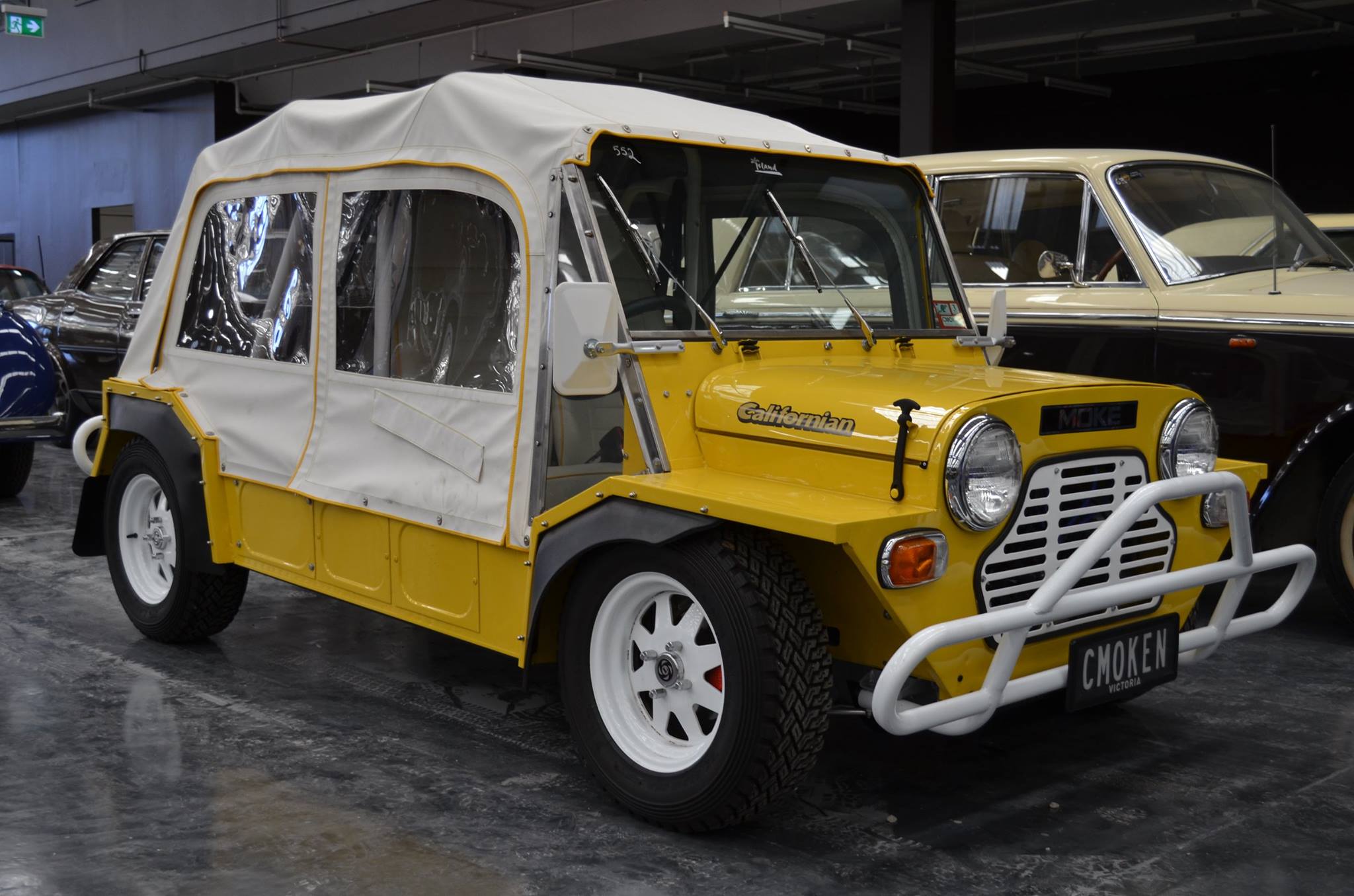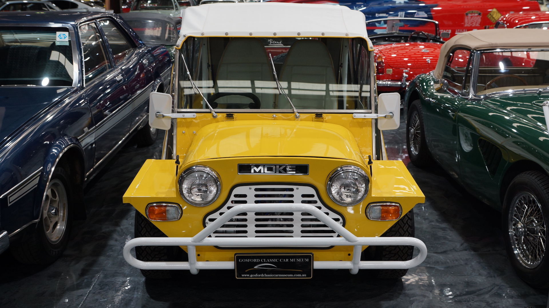 An Austin Mini Moke was my cross-country automotive partner back in 1991, and one of its kin resides at the Gosford.