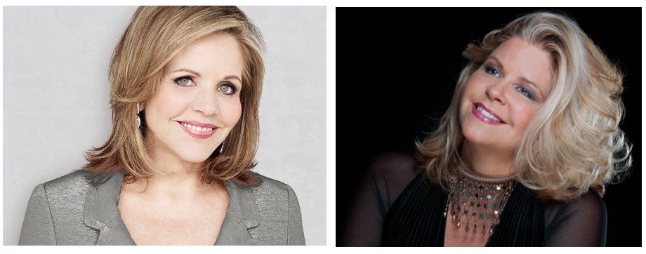 At left, Renée Fleming, Pennsylvania-born 1959, lyric soprano. Image from Limelight. At right, Susan Graham, New Mexico-born 1960, Texas-raised, mezzo-soprano. Image from Opera News.