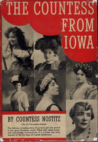 Lilie Bouton de Fernandez Azabal, 1875–1967, is another wonderful character described in the book. Iowa-born, Madeleine Bouton was a repertory actress in New York whose first husband was German Baron Guido Nimptsch. Divorcing the Baron, she moved up to Countess, wife of Russian Count Gricha von Nostitz. Outliving the Count and residing later in Biarritz with her third husband, a Spanish nobleman named de Fernandez Azabal, she found time to write her memoirs, The Countess From Iowa (Lilie de Fernandez – Azzbal). A must read, I say!