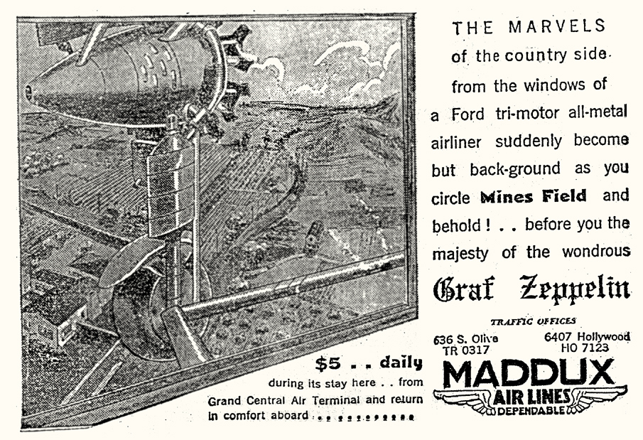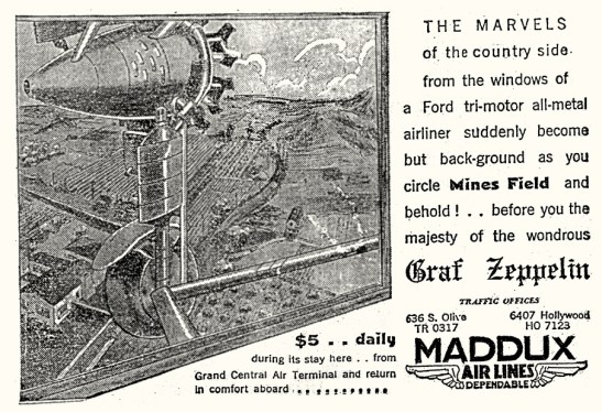 When the German airship Graf Zeppelin visited Los Angeles in August, 1929, Maddux Air Lines offered a wondrous view for only $5.