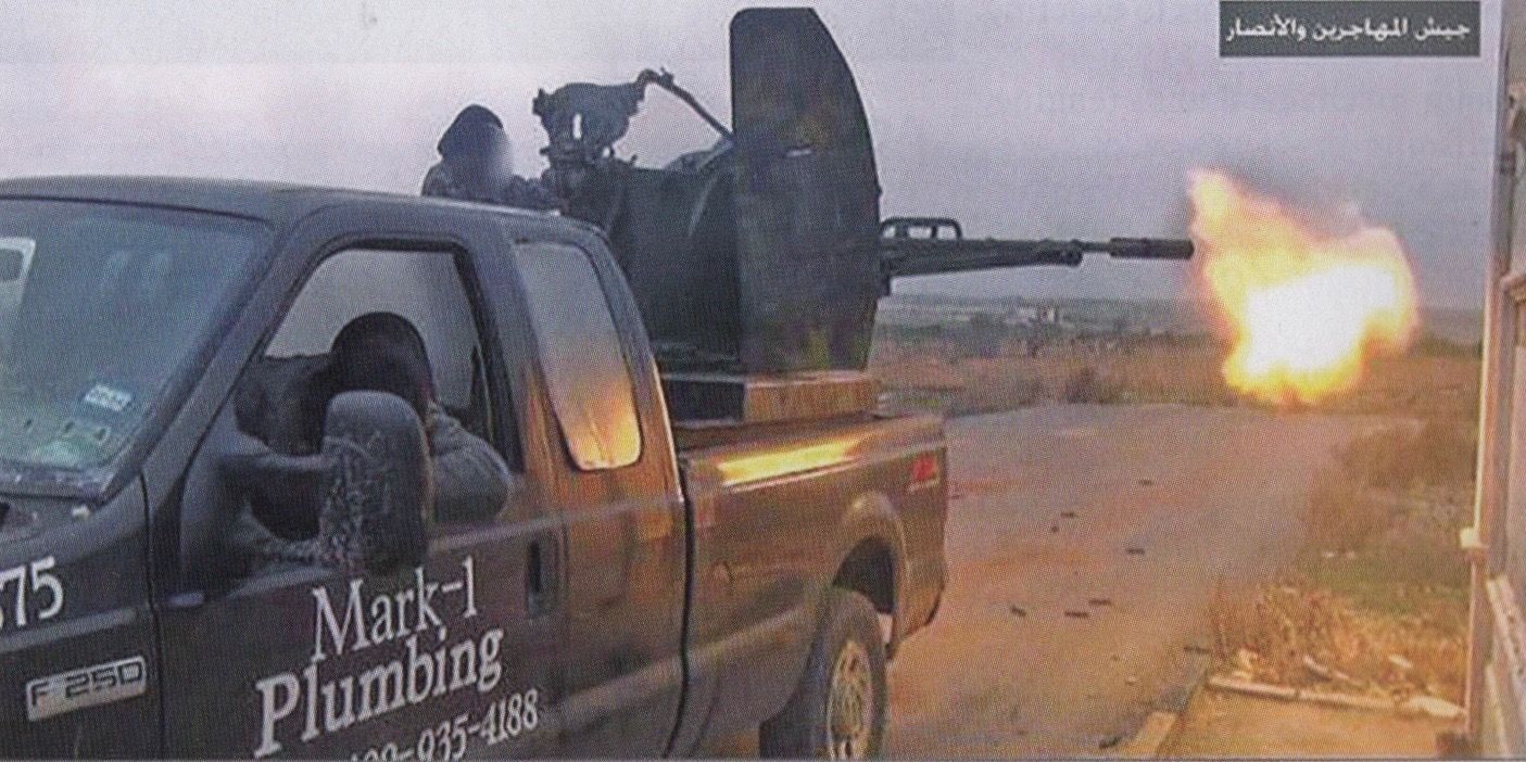 The crisis arose when the ex-Oberholtzer truck appeared in international news as a jihadist anti-aircraft vehicle in Syria, still retaining its Mark-1 Plumbing livery including the company’s phone number.