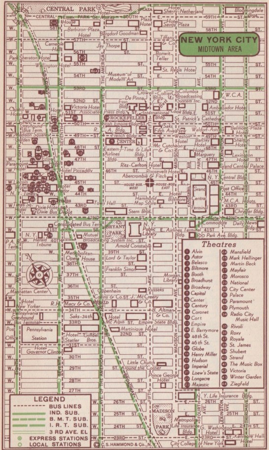 Manhattan. This and other images are from Hammond’s City Street Map and Trip Guide. The direction of north is indicated in each of these maps; in particular, it’s not always “up.”