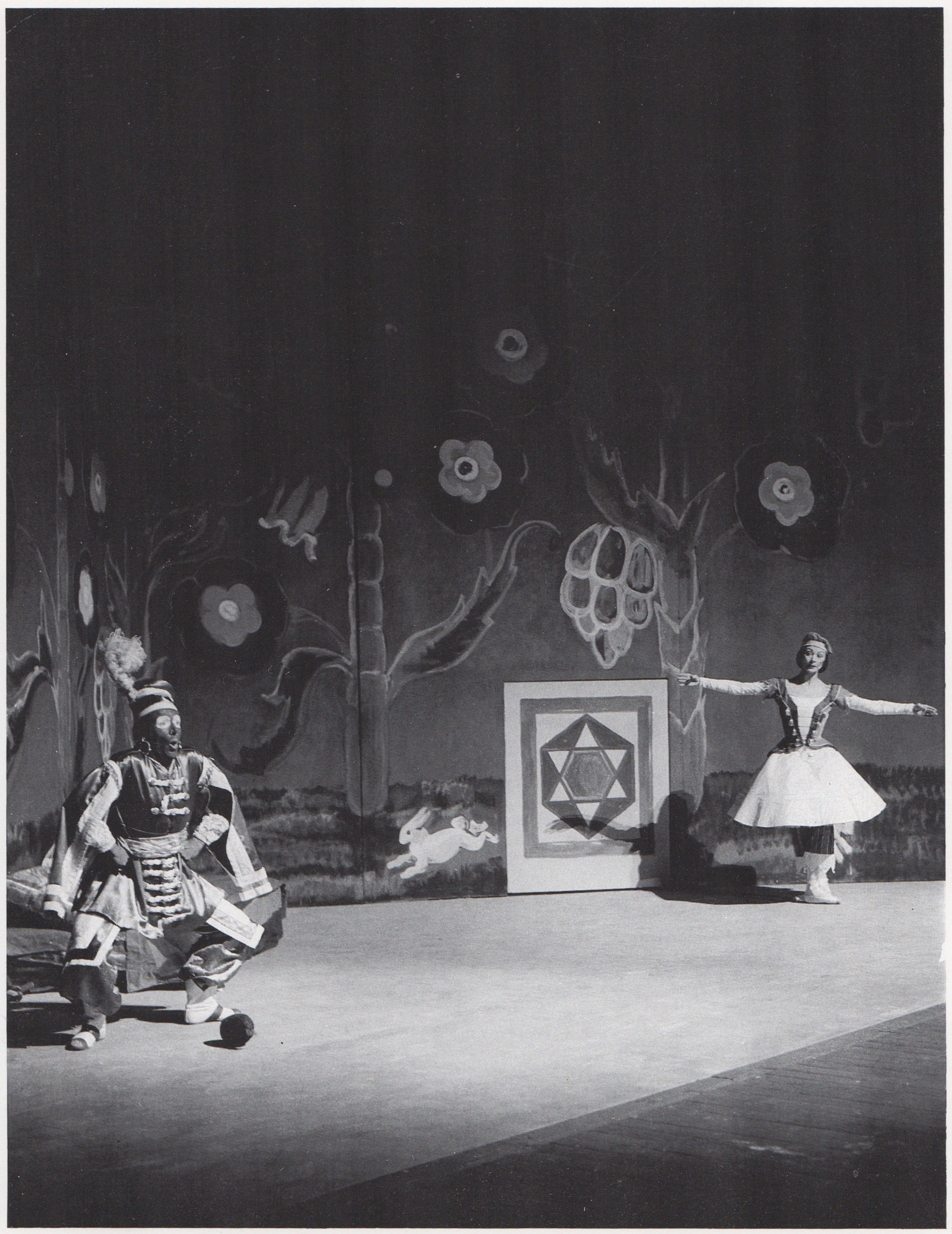 Margot Fonteyn as the Ballerina and Peter Clegg as the Moor in the 1957 Royal Ballet production of Petrushka.