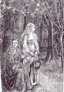 Laura is the wholesome blonde; Carmilla stares us down. Illustration by Michael Fitzgerald for “Carmilla” in The Dark Blue, January 1872.