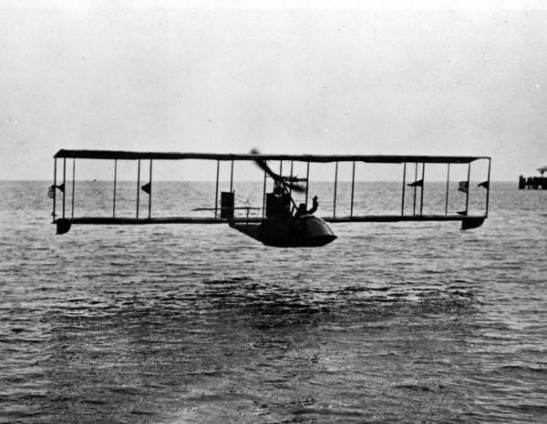 The St. Petersberg Tampa Airboat Line inaugurated its scheduled service across Tampa Bay on January 1, 1914, with this Roberts-powered Benoist XIV; Tony Jannus, its pilot.