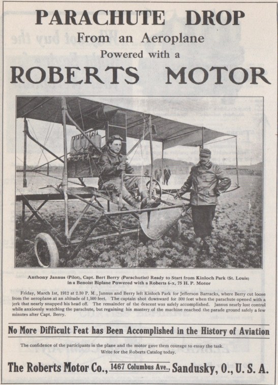 In fact, though, the fates of Benoist and Roberts became intertwined tragically. Encountering financial difficulties in the mid-Teens, Benoist moved his company from its original St. Louis location to Chicago and then to Sandusky, where it affiliated with Roberts Motor Company.