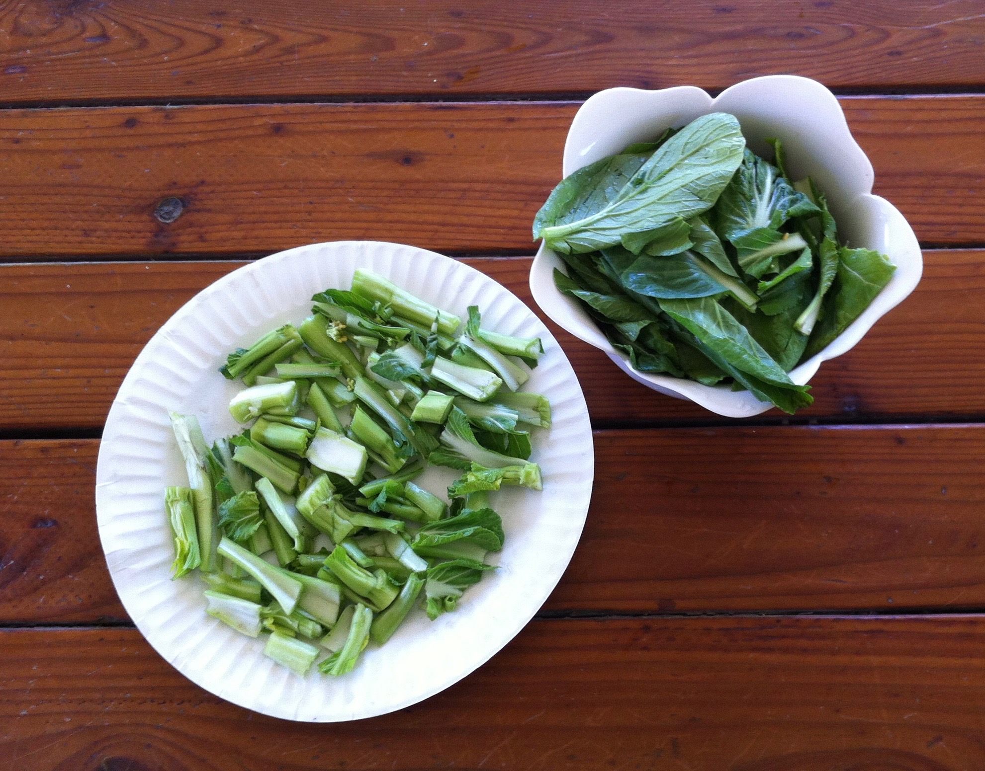 Wash, drain, and trim the bottoms off the gai lan. Cut them into 2 1/2-in. pieces, separating the leaves and buds from the stalks (which take a longer time to stir-fry). By the way, the recipe would work just fine with traditional broccoli or Broccolini.