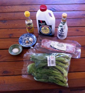 Combine the soy sauce, sake, and sugar; save for the finale. Other variations could use bottled oyster sauce, or any other stir-fry sauce for that matter.