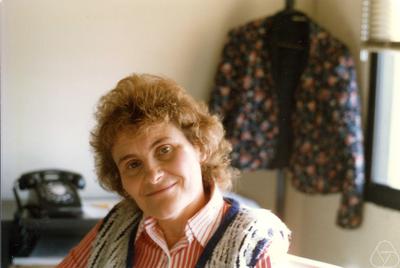 Marina Ratner in her office at UC Berkeley, 1984. Image from Oberwolfach Photo Collection.