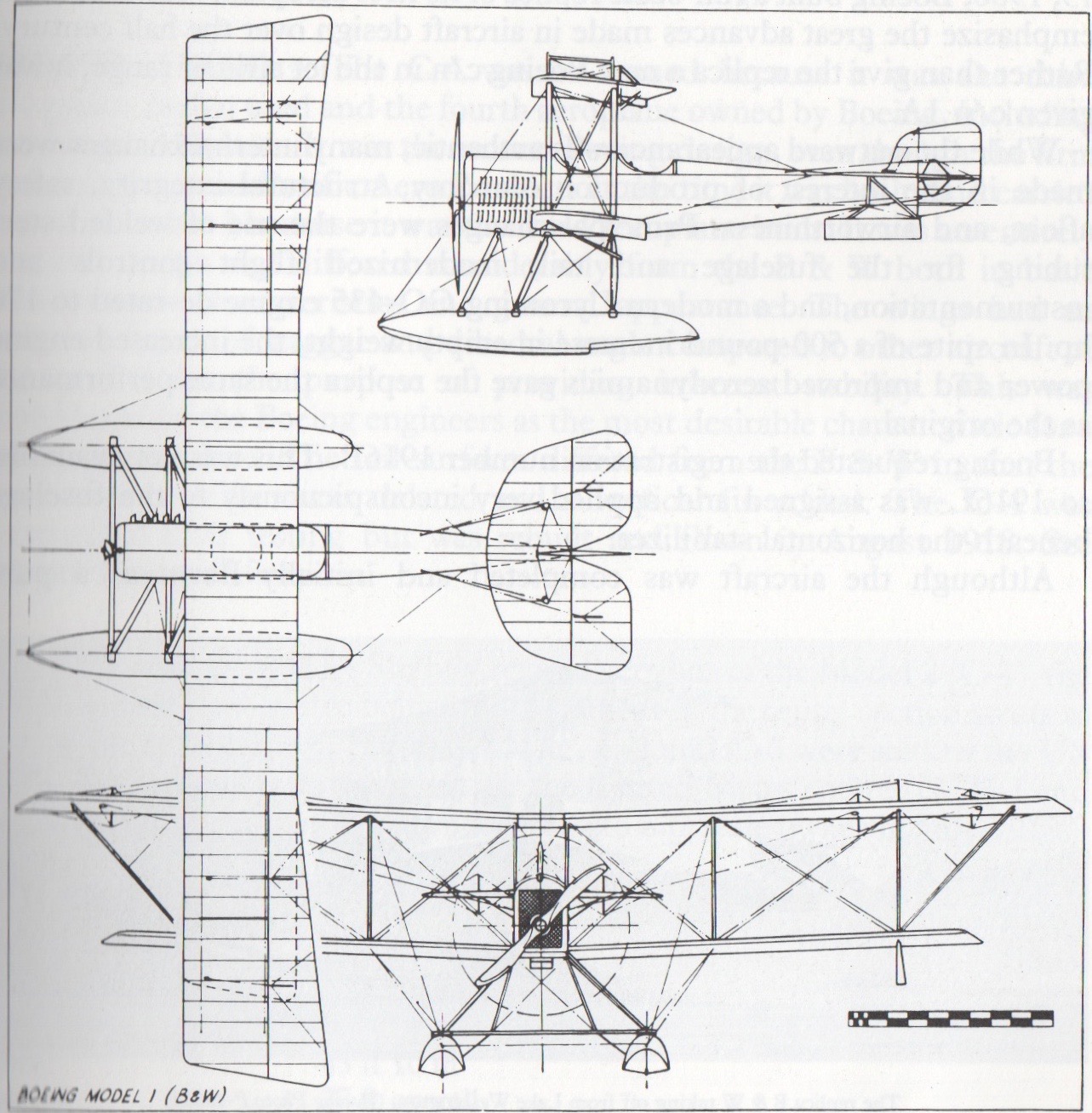 Boeing Model 1 (B&W). This and other images from Boeing Aircraft Since 1916 (Putnam Aviation Series), by Peter M. Bowers, Naval Institute Press, 1966.